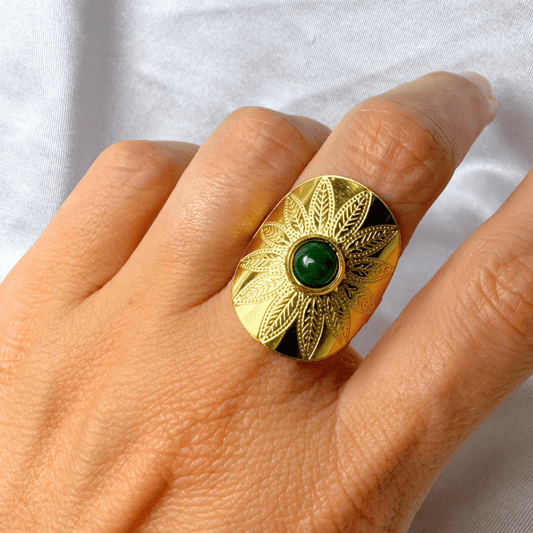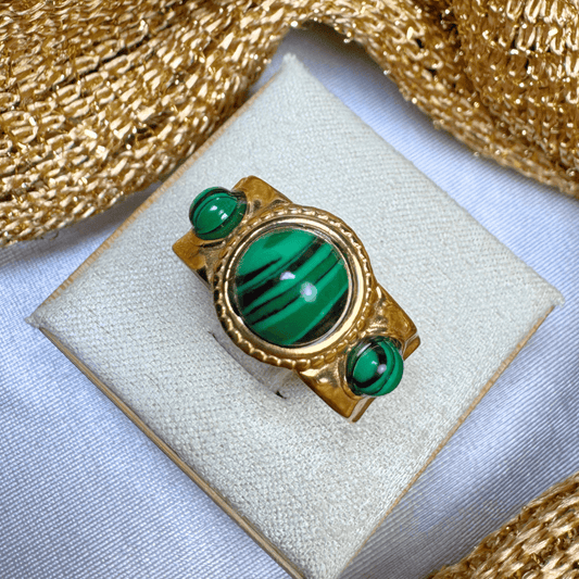 18K Gold Plated Vintage Green Malachite Oval Ring - Fleur (Waterproof)