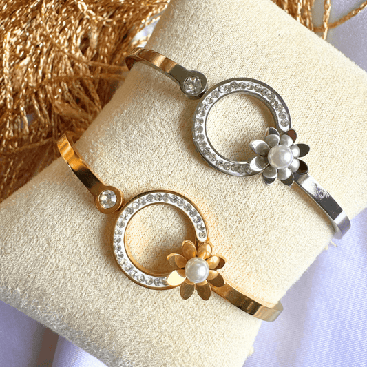 Flower Crystal Cuff Bangle - Amour (Waterproof)