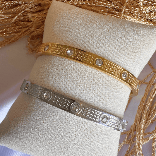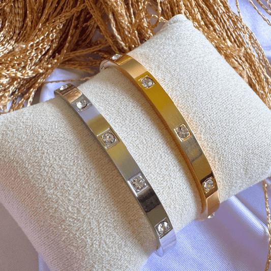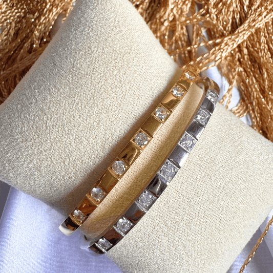 Geometric Zircon Station Hinged Bangle - Lena (Waterproof)
