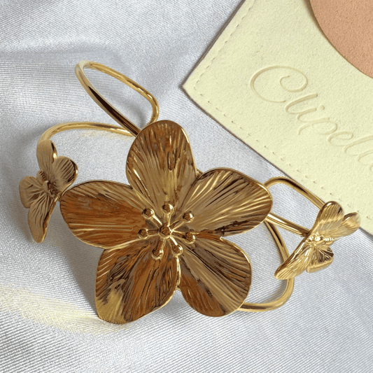 18K Gold Plated Flower & Butterfly Wire Cuff - Fanny (Waterproof)
