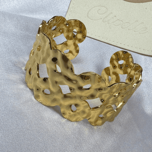 18K Gold Plated Hammered Geometric Cuff Bangle - Malika (Waterproof)