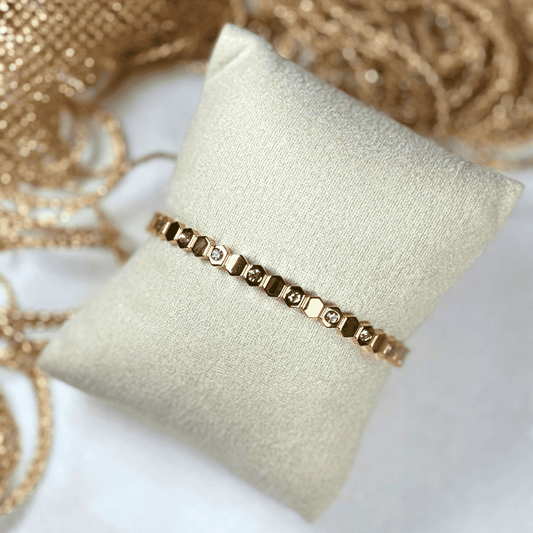 18K Gold Plated Honeycomb Zircon Bangle - Anna (Waterproof)