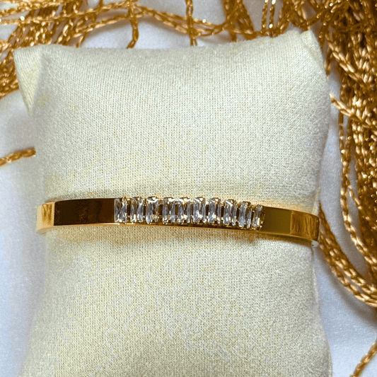 18K Gold Plated Geometric Zircon Station Bangle - Tania (Waterproof)