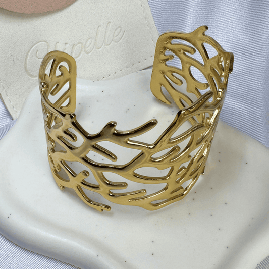 18K Gold Plated Sculptural Coral Reef Cuff - Amal (Waterproof)