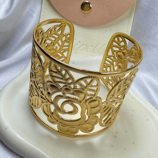 18K Gold Plated Sculptural Rose Garden Cuff - Alexa (Waterproof)