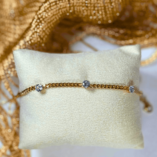 18K Gold Plated Zircon Station Curb Bracelet - Clara (Waterproof)