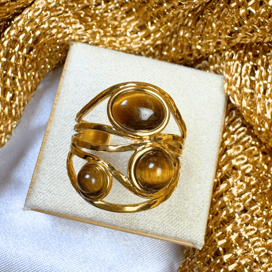 18K Gold Plated Triple Tiger's Eye Statement Ring - Farah (Waterproof)