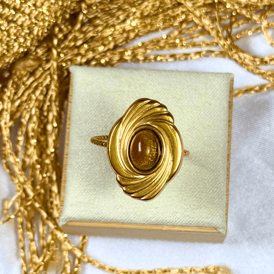 18K Gold Plated Vintage Swirl Amber Stone Ring - Ziah (Waterproof)