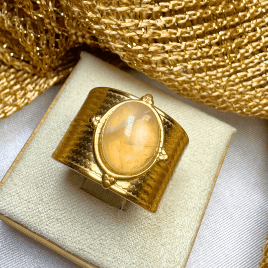 18K Gold Plated Chunky Rope Amber Stone Ring - Lucky (Waterproof)