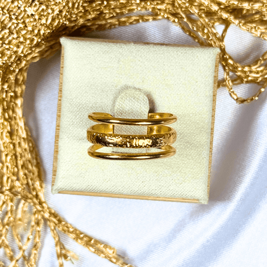 18K Gold Plated Triple Stack Textured Ring - Klaris (Waterproof)