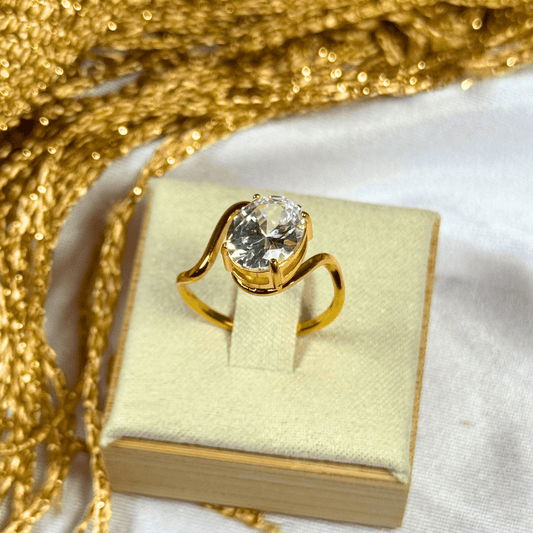 18K Gold Plated Sculptural Oval Zircon Ring - Sara (Waterproof)